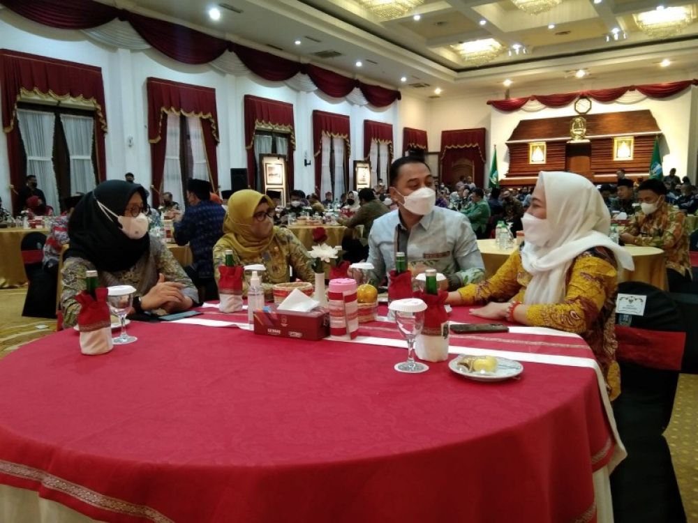 Bupati Bojonegoro Anna Mu'awanah (kanan hijab putih) berbincang dengan Wali Kota Surabaya, Eri Cahyadi. (Ist)