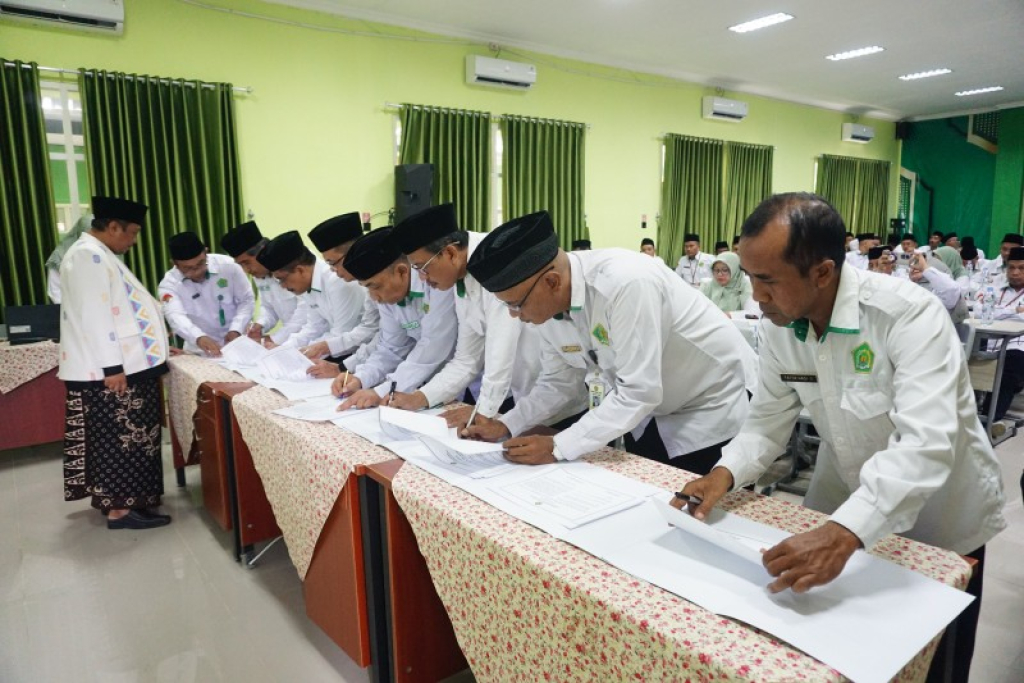 Usai pengarahan, acara dilanjutkan dengan penandatanganan Perjanjian Kinerja dan Pakta Integritas oleh seluruh pejabat dan pimpinan satuan kerja di lingkungan Kemenag Kabupaten Blitar.