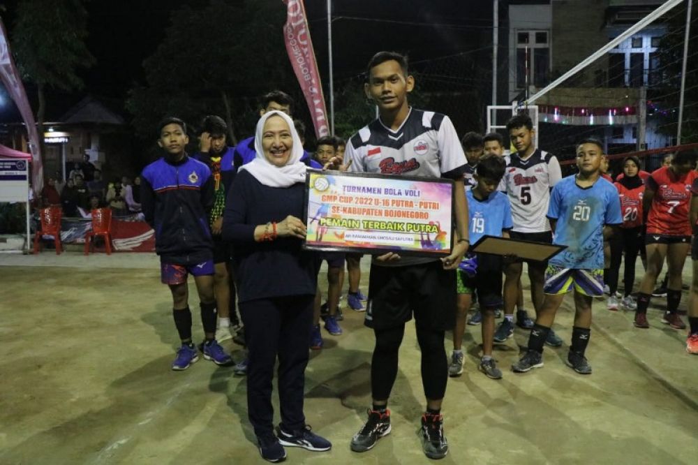 BOJONEGORO | B-news.id - Bupati Bojonegoro, Anna Mu'awanah mengapresiasi penyelenggaraan turnamen Bola Voli Putra Putri GMP Cup U 16 Tahun 2022.