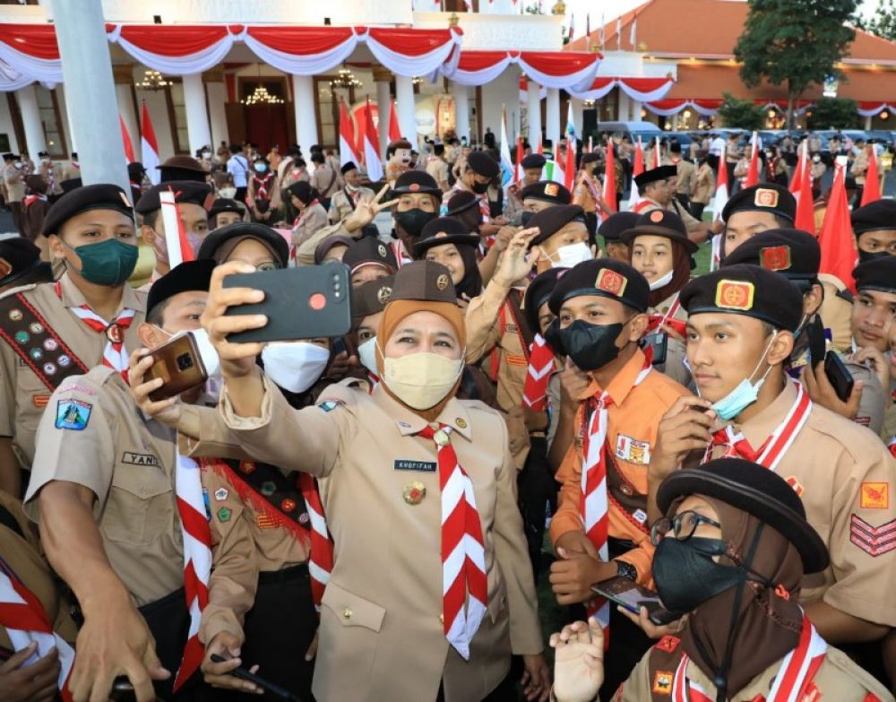 SURABAYA | B-news.id - Gubernur Jawa Timur Khofifah Indar Parawansa melepas secara resmi Kontingen Jawa Timur pada Jambore Nasional (Jamnas) XI yang akan diadakan di Bumi Perkemahan dan Graha Wisata (Buperta) Cibubur, Jakarta Timur pada 12-21 Agustus 2022 mendatang.