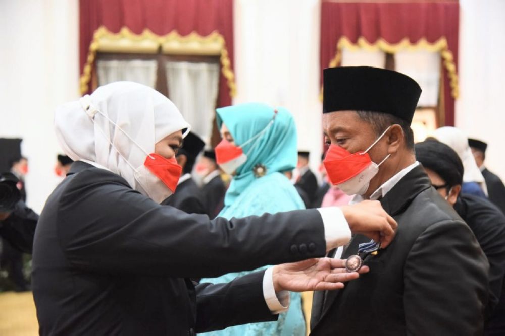 Penganugerahan tanda kehormatan RI tersebut menjadi sangat istimewa karena penyematan lencananya dilakukan langsung oleh Gubernur Jawa Timur Khofifah Indar Parawansa.