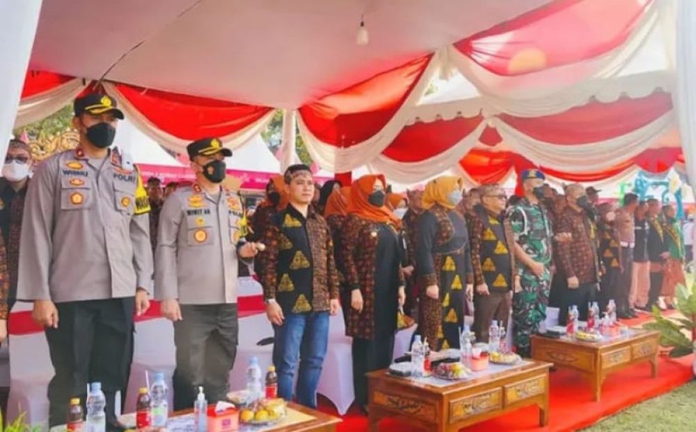Bupati Mojokerto Ikfina Fahmawati, Wakil Bupati Mojokerto Muhammad Al Barra beserta Forkopimda Kabupaten Mojokerto nampak menghadiri pada acara pembukaan Majapahit Festival (Majafest), Selasa (23/8/2022).