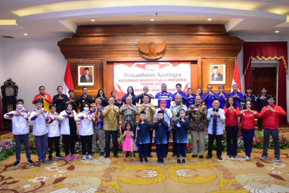 Hadir dalam kesempatan tersebut Sekdaprov Jatim, Bapak Wushu Indonesia, Wakil Ketua Umum PB Wushu Indonesia, Sekjen PB Wushu Indonesia, Presiden Direktur Maspion Group, Ketua Pengurus Provinsi Wushu Indonesia, Ketua Kejurnas Wushu Piala Presiden Tahun 2022, Jajaran Kepala OPD Pemprov Jatim dan kontingen atlet wushu. (zainul)