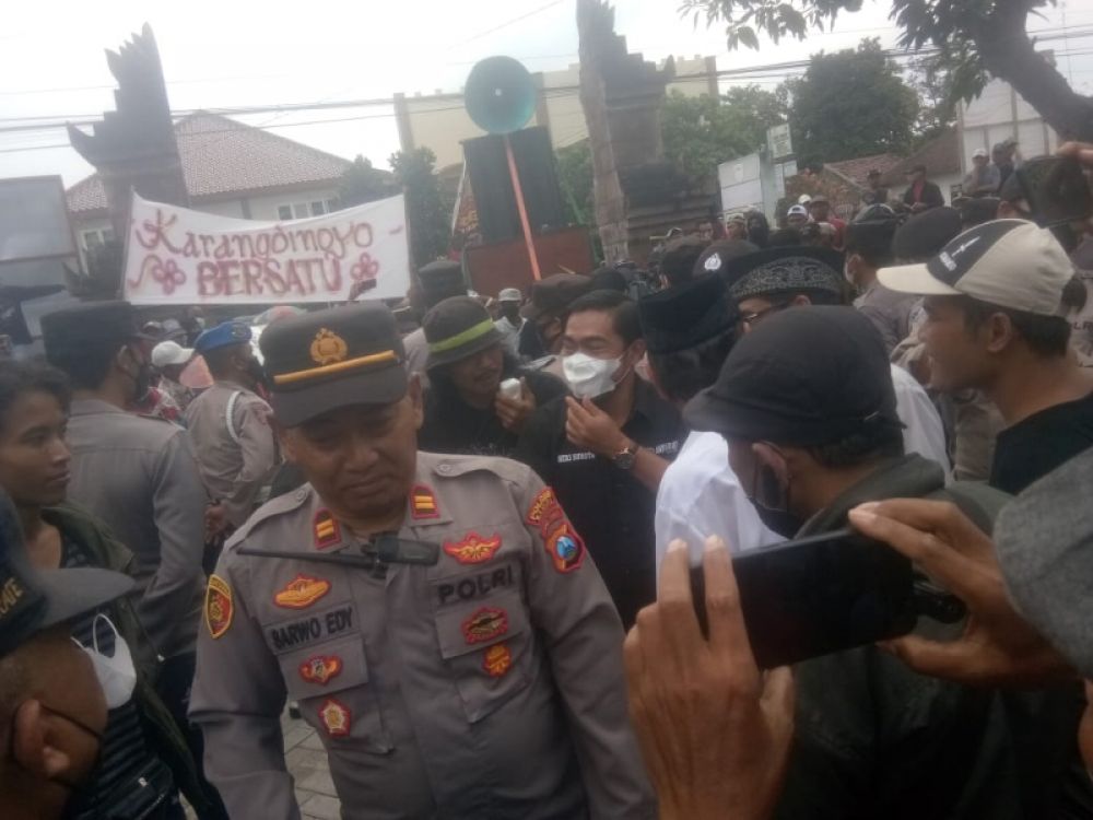 Dalam aksinya, usai menyampaikan orasi di Kantor Kecamatan Kepung, warga menuju kantor desa untuk menyampaikan tuntutannya dan langsung didengarkan oleh bupati yang akrab disapa Mas Dhito itu.