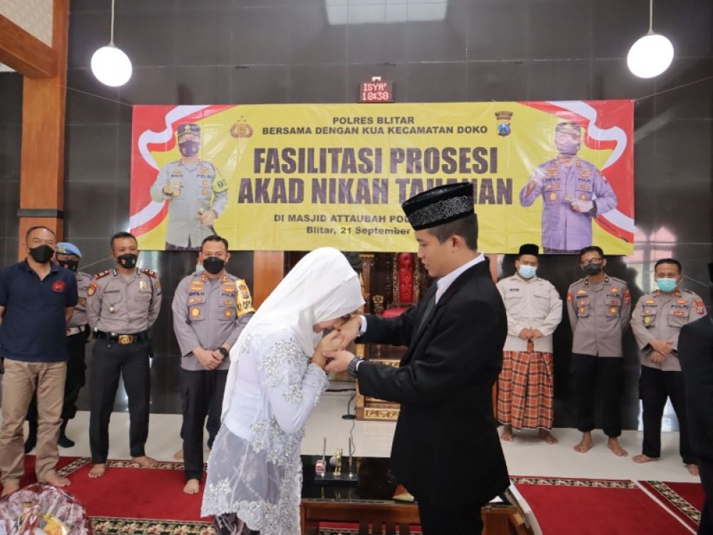 Kapolres Blitar AKBP Adhitya Panji Anom, S.I.K. hari ini Rabu ( 21/09/22 ) mengungkapkan, Ijab Qabul ( akad nikah ) dilaksanakan di Masjid At-Taubah dengan dihadiri Kepala KUA Kecamatan Doko, Orang Tua / Wali Kedua Belah Pihak, Saksi Dari Kedua Belah Pihak, serta Keluarga Dari Kedua Belah Pihak.