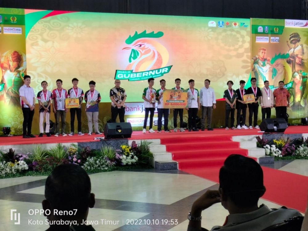 Setelah dilakukan babak penyisihan secara online, dan hari ini di gelar final secara offline, didapat juara yang merupakan tim perwakilan kota/ kabupaten, berikut berturut juara 1, 2, dan 3 masing masing nomer, : Mobile Legend: Surabaya, Sidoarjo, Kediri, Free fire : Sidoarjo, Sidoarjo, Sumenep, PUBG : Tulung agung, Madiun/ Magetan, Surabaya. (ali)