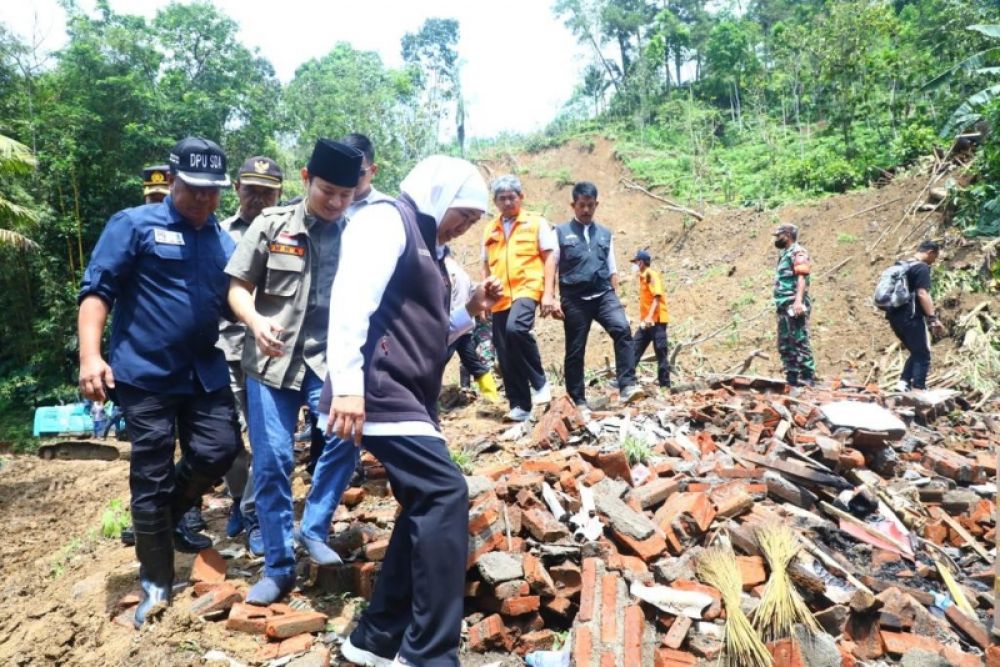 Gubernur Khofifah meninjau lokasi longsor di Desa Sumurup, Trenggalek. (ist)
