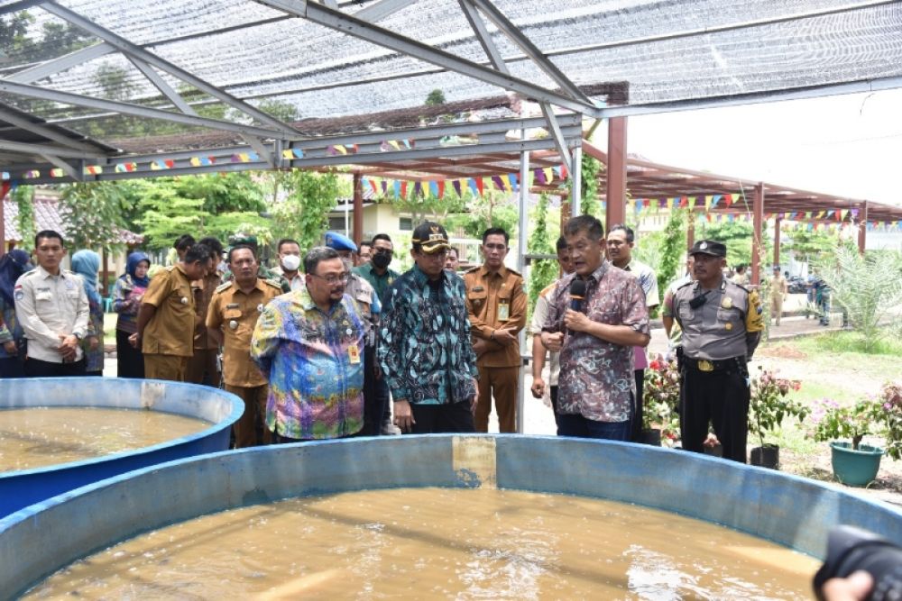 Gus, Muhdlor fidampibgi Kadis Kelautan dan Perikanan H Bahruni saat meninjau kolam lele. (Ist)