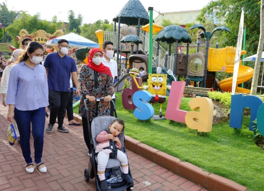 Gubernur Jawa Timur Khofifah Ibdar Parawansa bersama keluarga saat berlibu ke destinsi wisata Jatim Park Batu Jawa Timur. (Ist)