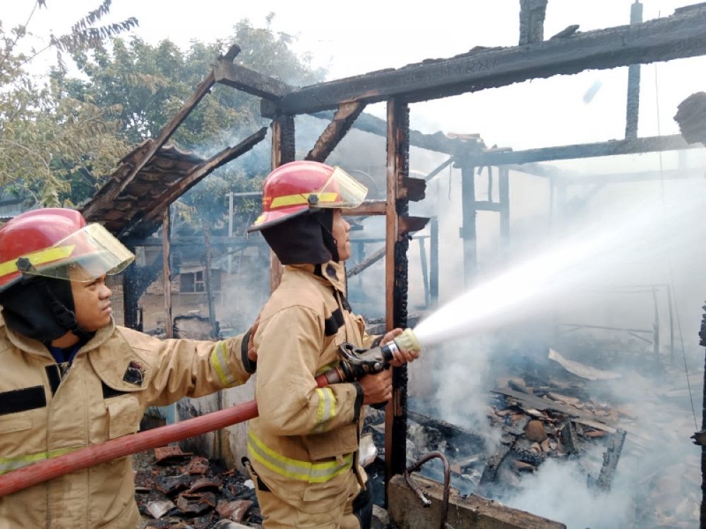 Petugas Damkar berusaha maksimal menyelamatkan gedung yang terbakar untuk perkecil kerugian matarial. (Ist)
