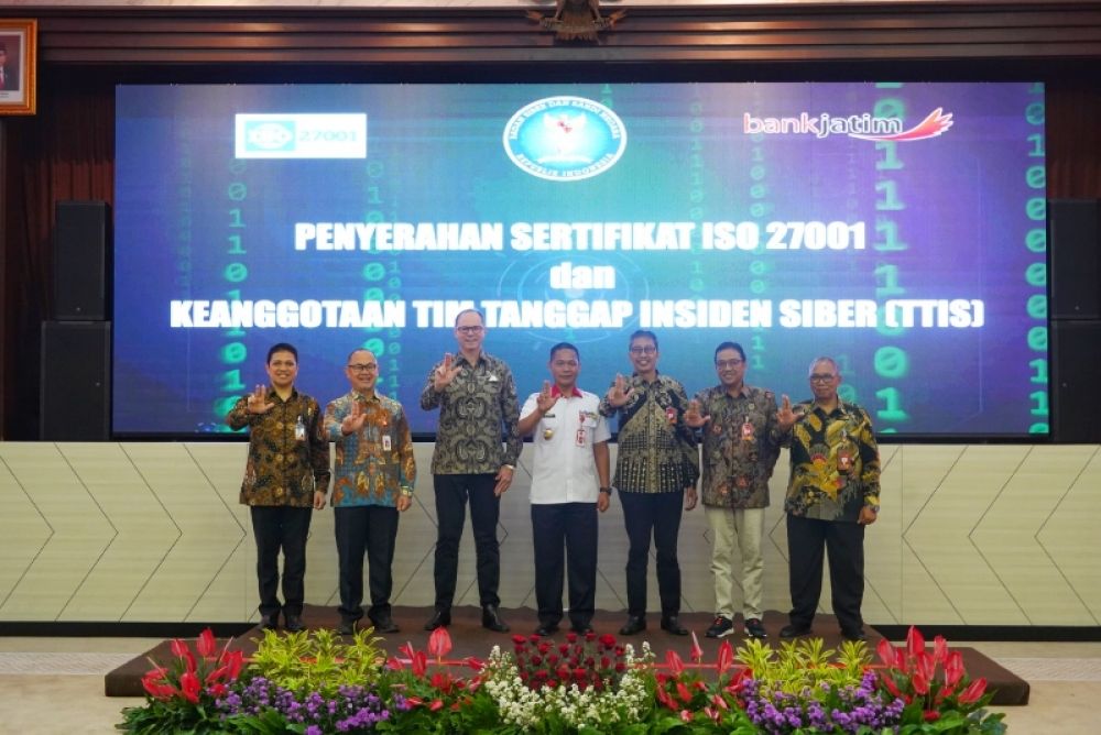 Bertempat di ruang Bromo Lantai 5, Kantor Pusat Bank Jatim, seremonial penyerahan ISO 27001:2013 dihadiri oleh Busrul Iman (Direktur Utama bankjatim), Tonny Prasetyo (Direktur Teknologi Informasi & Operasi bankjatim), Badan Siber dan Sandi Negara, Puslabfor Bareskrim POLRI, Dinas Komunikasi dan Informatika Provinsi Jawa Timur, Bank Indonesia (BI) Wilayah Jawa Timur, Otoritas Jasa Keuangan (OJK) Wilayah Jawa Timur, serta Lembaga Sertifikasi (Bureau Veritas Indonesia).