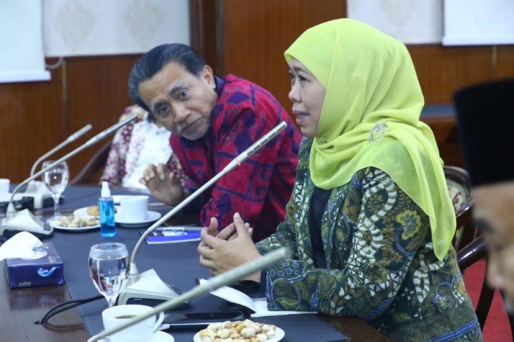 Gubernur Jawa Timur, Khofifah Indar Parawansa menyampaikan paparannya dihadapan Dubes RI untuk Mesir Lutfi Raut terkait kerjasama bidang pendidikan, ekonomi hingga pariwisata. (Ist)