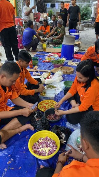 Sejumlah petugas diterjunkan untuk membantu evakuasi warga terdampak. Malam ini jam 19.00 WIB, BPBD dan Tagana mendistribusikan 1.000 nasi bungkus