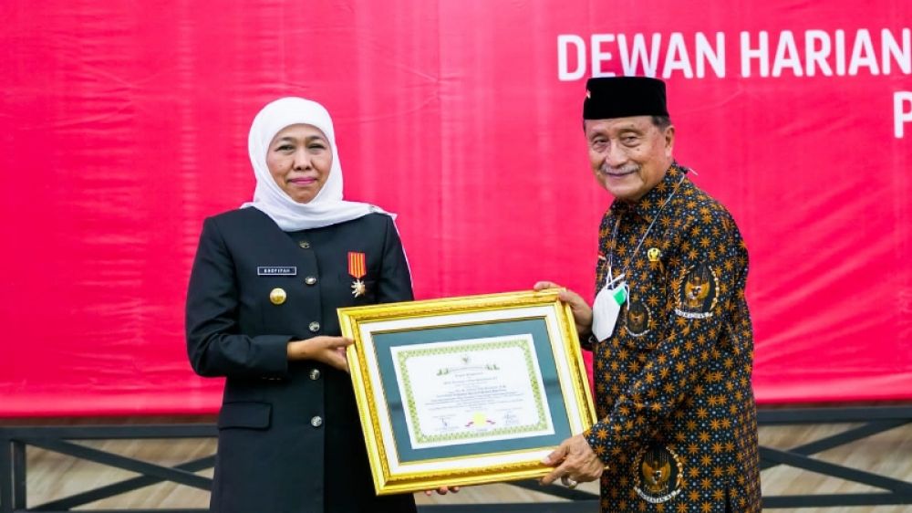 SURABAYA | B-news.id - Gubernur Jawa Timur Khofifah Indar Parawansa menerima penghargaan dan Pin 9 Windu Kemerdekaan Republik Indonesia dari Dewan Harian Nasional Badan Pembudayaan Kejuangan 45 (DHN BPK 45) Provinsi Jawa Timur pada Jumat (2/12).