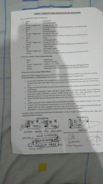 Sementara itu, Kepala Sub Seksi Hukum dan Komunikasi Perum Perhutani KPH Malang, Hadi Mustofa menyatakan batalnya kesepakatan perdamaian tersebut karena adanya isu miring yang menerpa pihaknya pasca kesepakatan.