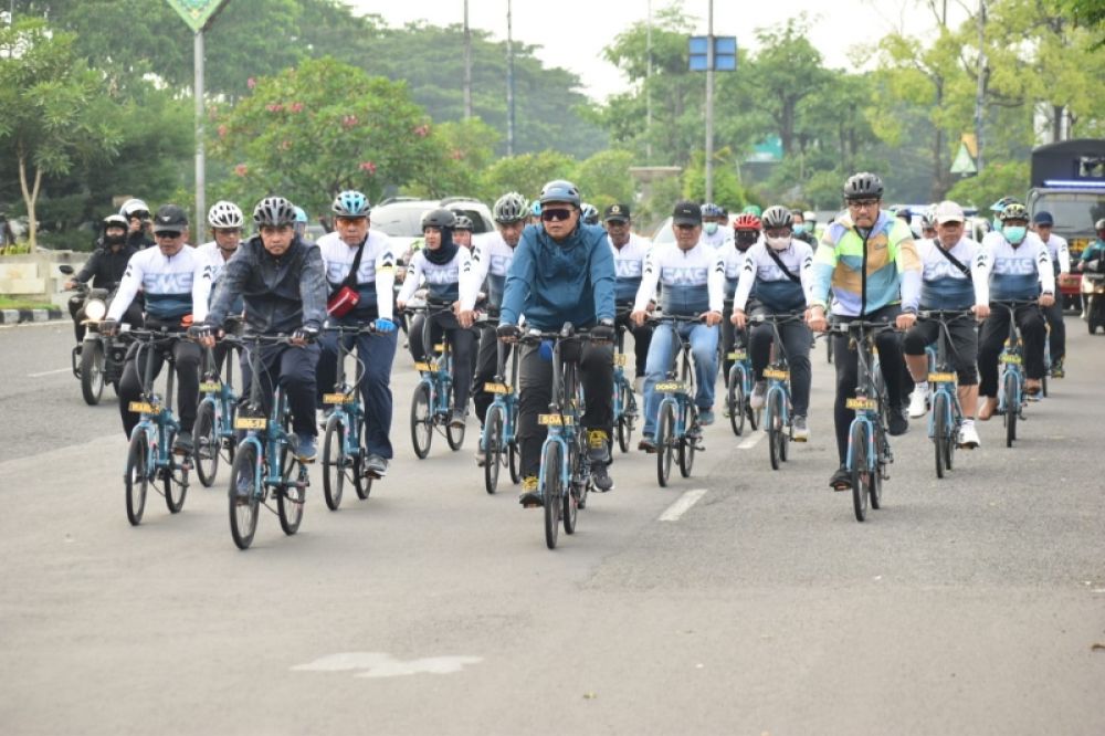 Kapolresta beserta jajaran saat olahraga gowes di wilayah kecamatan Candi. (Ist)