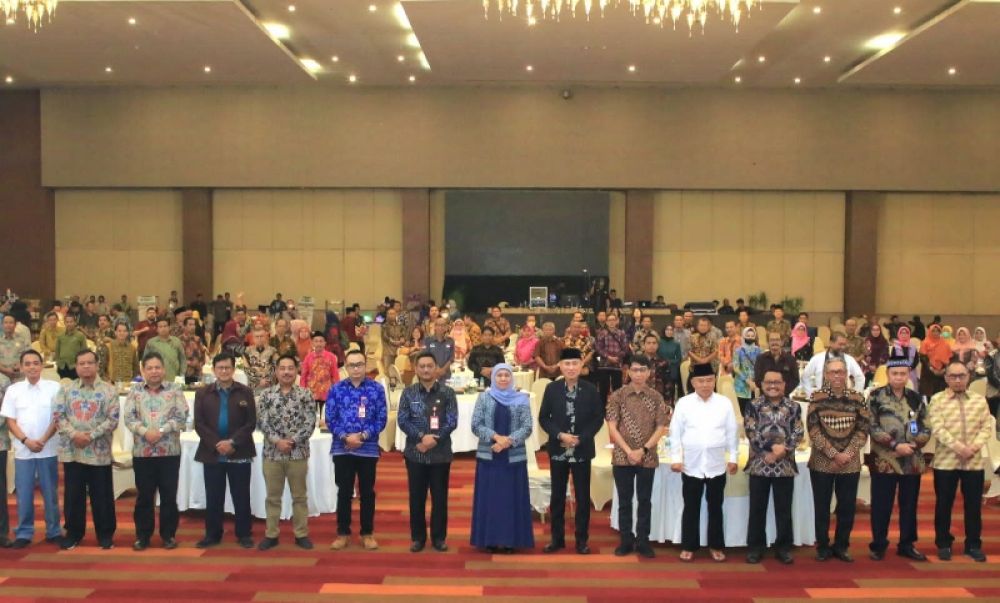 Gubernur Khofifah saat bergoto bersama dalam acara Refleksi Pendidikan Jawa Timur. (Ist)