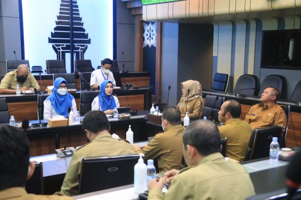 Bupati Mojokerto Ikfina Fahmawati lakukan pertemuan dengan BPJS Kesehatan cabang Mojokerto lakukan penandatanganan nota kesepakatan bersama terkait program JKN. (Ist)