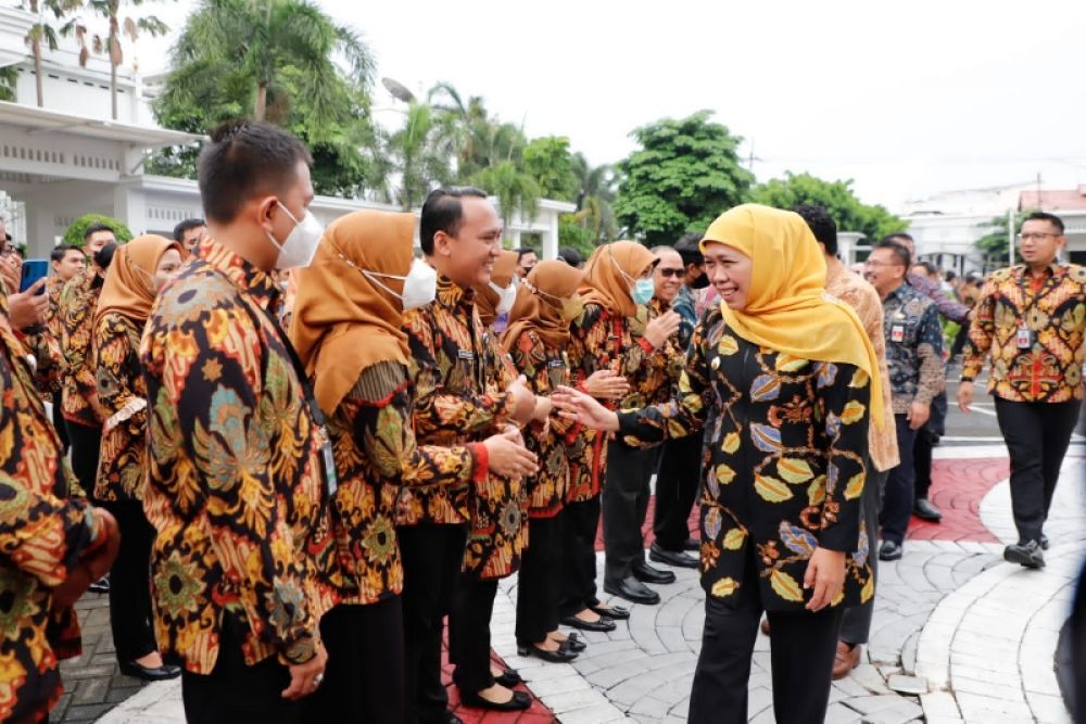 Gubernur Khofifah berikan ucapan selamat kepada ASN. (Ist)