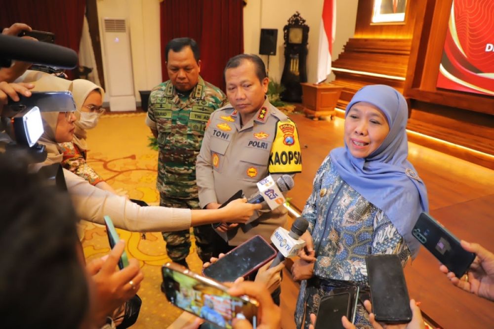 Gubernur Khofifah berikan keterangan pers. (Ist)