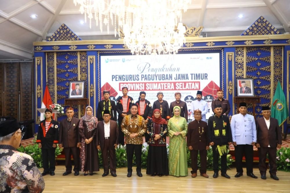 PALEMBANG | B-news.id - Gubernur Jawa Timur Khofifah Indar Parawansa mengukuhkan 60 orang yang tergabung dalam Paguyuban Masyarakat (Pama) Jatim Provinsi Sumatera Selatan masa bakti 2022-2026 di Kantor Gubernur Griya Agung, Kota Palembang, pada Sabtu, (7/1) malam.