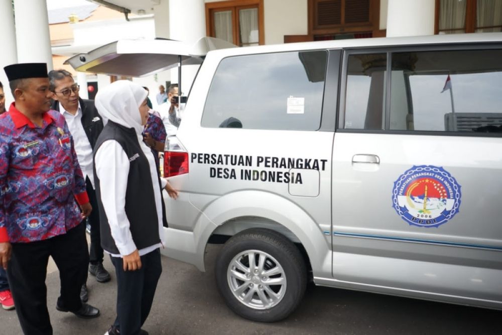 SURABAYA | B-news.id - Gubernur Jawa Timur Khofifah Indar Parawansa didampingi Dirut PT Bank Jatim Busrul Iman menyerahkan bantuan kendaraan operasional kepada Persatuan Perangkat Desa Indonesia (PPDI) Jawa Timur, di Gedung Negara Grahadi, Jumat (20/1/2023) pagi.