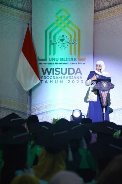 BLITAR | B-news.id - Gubernur Jawa Timur Khofifah Indar Parawansa memberi pesan khusus pada para lulusan program sarjana Universitas Nahdlatul Ulama (UNU) Blitar yang hari ini, Sabtu (28/1/2023), dikukuhkan sebagai wisudawan dan wisudawati.