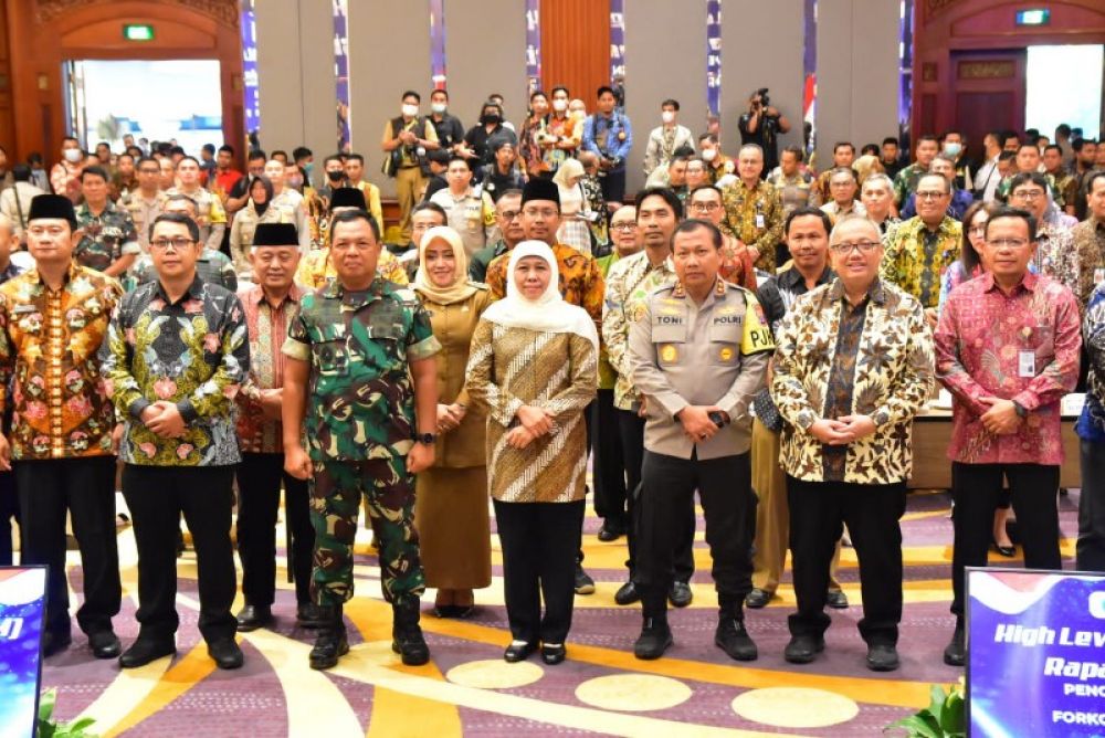 Gubernur Khofifah bersama Forkopimda, jajaran OPD, Bupati / Wali Kota dalam pecepatan pengendalian inflasi Jatim 2023. ) ist)