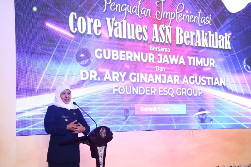 SURABAYA | B-news.id - Upaya pemerintah provinsi Jawa Timur dalam mengimplementasikan core values ASN BerAKHLAK (Berorientasi Pelayanan, Akuntabel, Kompeten, Harmonis, Loyal, Adaptif, dan Kolaboratif) mendapatkan penghargaan dari Accelerated Culture Transformation (ACT) Consulting International/ESQ Group.