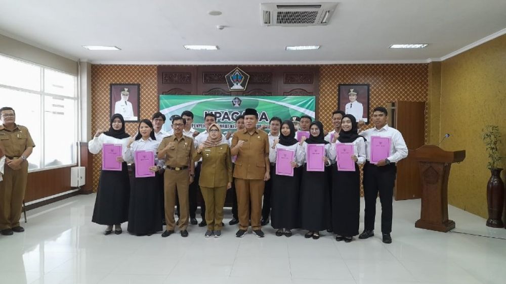 BLITAR | B-news.id - Bupati Blitar Hj. Rini Syarifah menyerahkan Surat Keputusan (SK) pengangkatan kepada 13 Calon Pegawai Negeri Sipil (CPNS) di Lingkungan Pemerintah Kabupaten Blitar tahun 2023 yang berasal dari lulusan sekolah kedinasan.