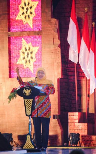 Gubernur Khofifah menyampaikan sambutan. (Ist)
