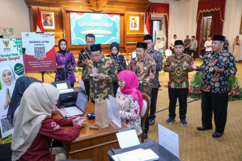Pada kesempatan itu, Gubernur Khofifah membayarkan langsung zakat malnya dan diikuti oleh para Kepala OPD dan Forkopimda, serta pelaku Dunia Usaha dan Industri Kerja (DUDIKA).