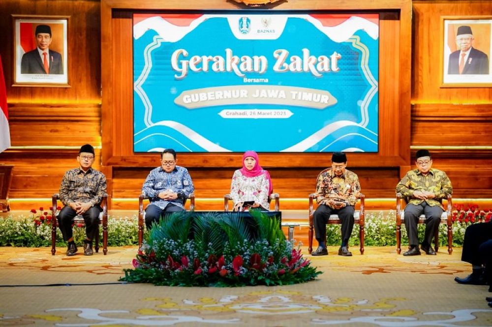 SURABAYA | B-news.id - Gubernur Jawa Timur Khofifah Indar Parawansa menggalakkan Gerakan Zakat Bersama Gubernur Jawa Timur dengan Badan Amil Zakat Nasional (Baznas) Jatim di Gedung Negara Grahadi pada Minggu (26/3).