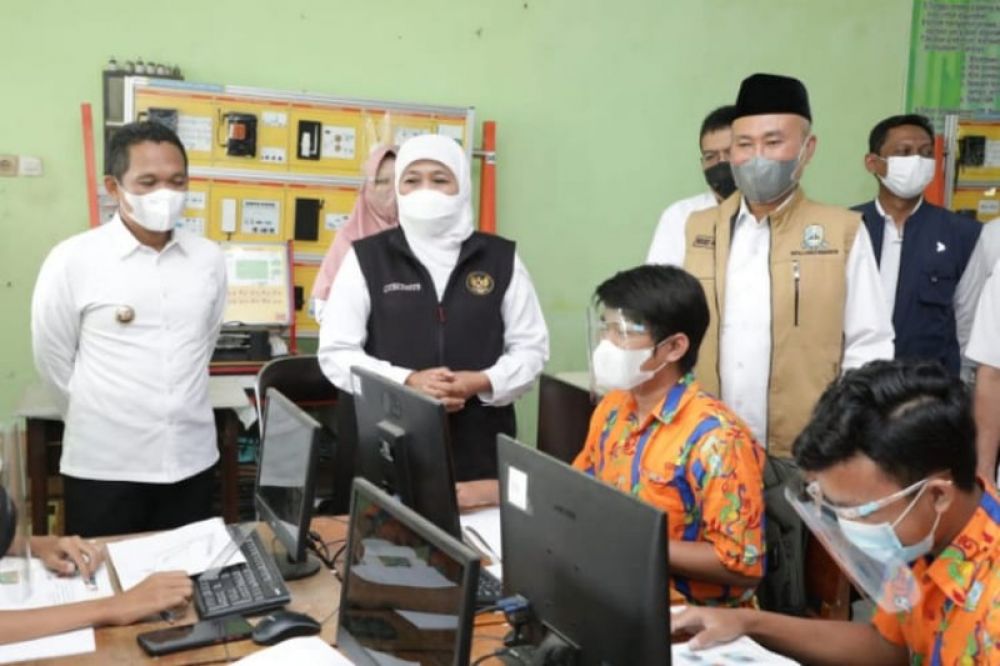 Gubernur Khofifah didampingi Plt Kadis Pendidikan Prov Jatim. (Ist)
