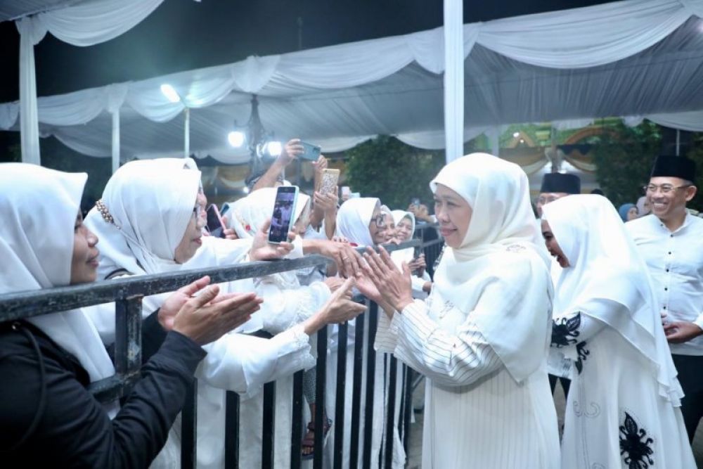 Gubernur Khofifah bersalaman dengan para jamaah. (Ist)