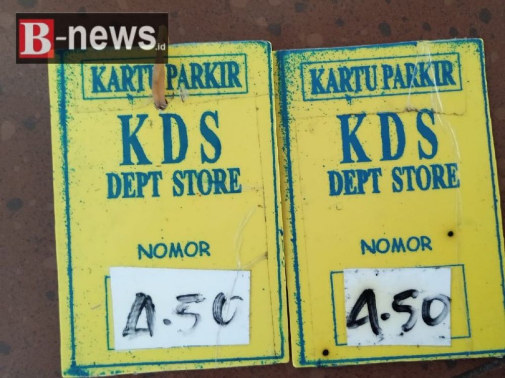 Kartu Parkir KDS Dept Store tak sesuai Perbup No.23 Tahun 2021 Pasal 14 Tentang Penyelenggaraan Perparkiran. (Ist)