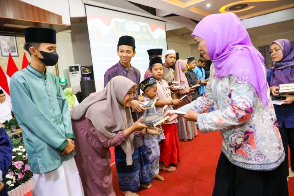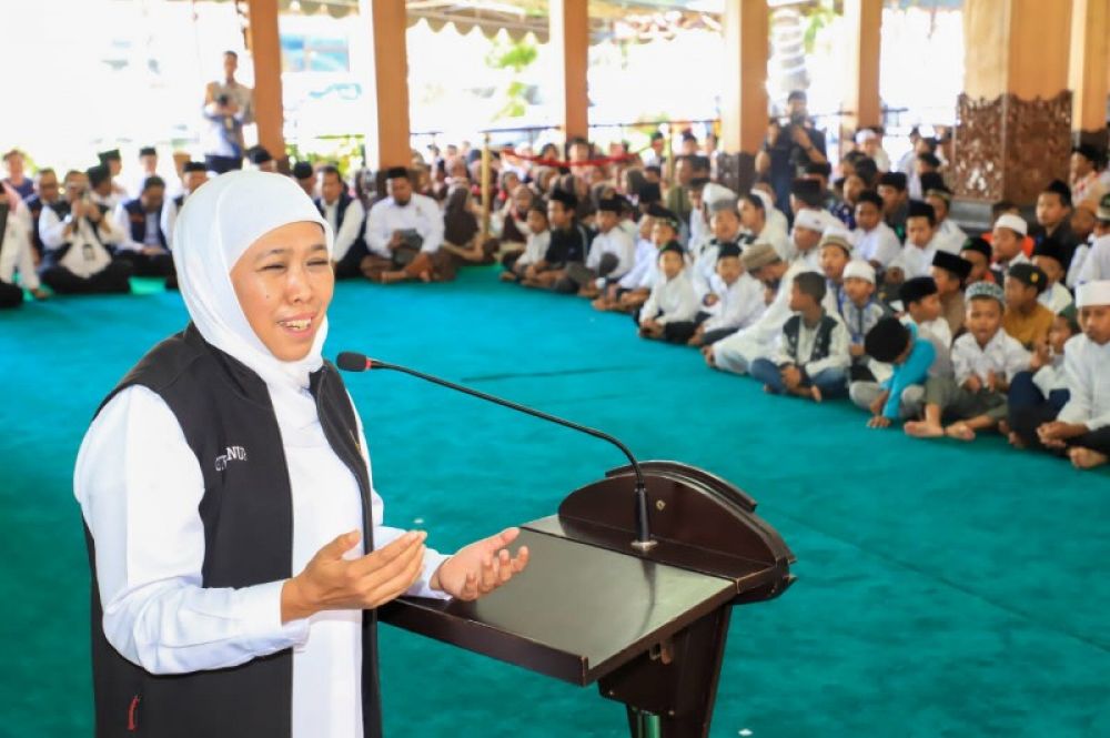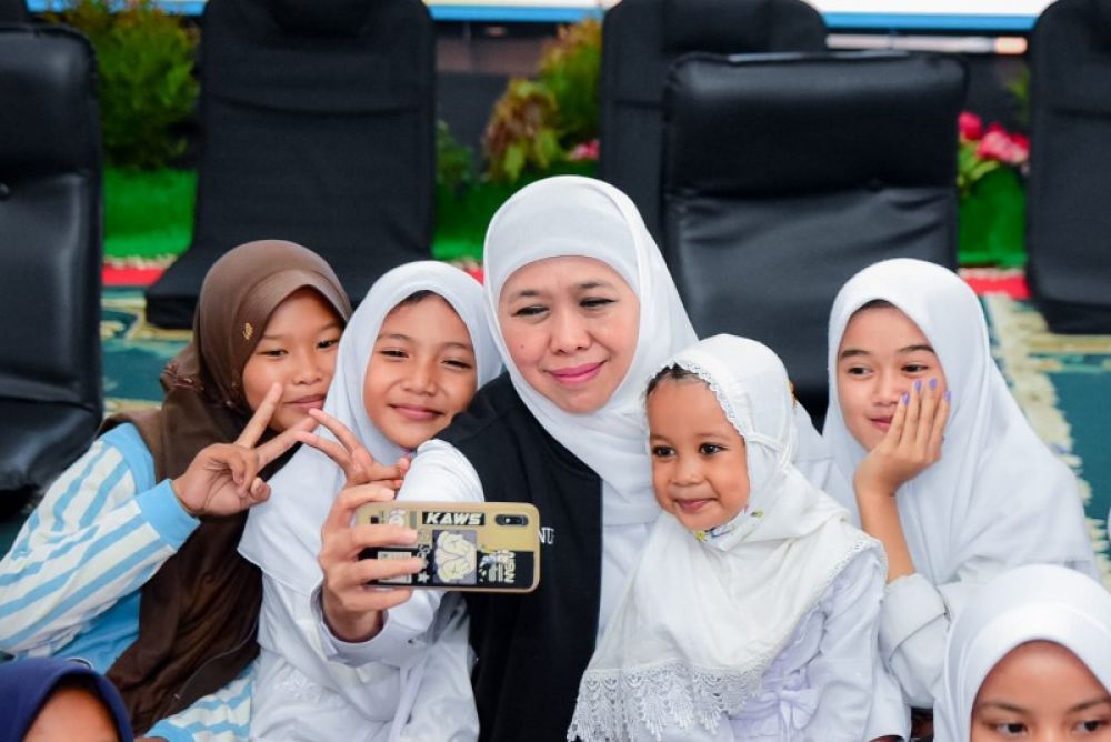 Gubernur Khofifah Safari Ramadhan berbagi ceria dengan ratusan anak yatim. (Ist)