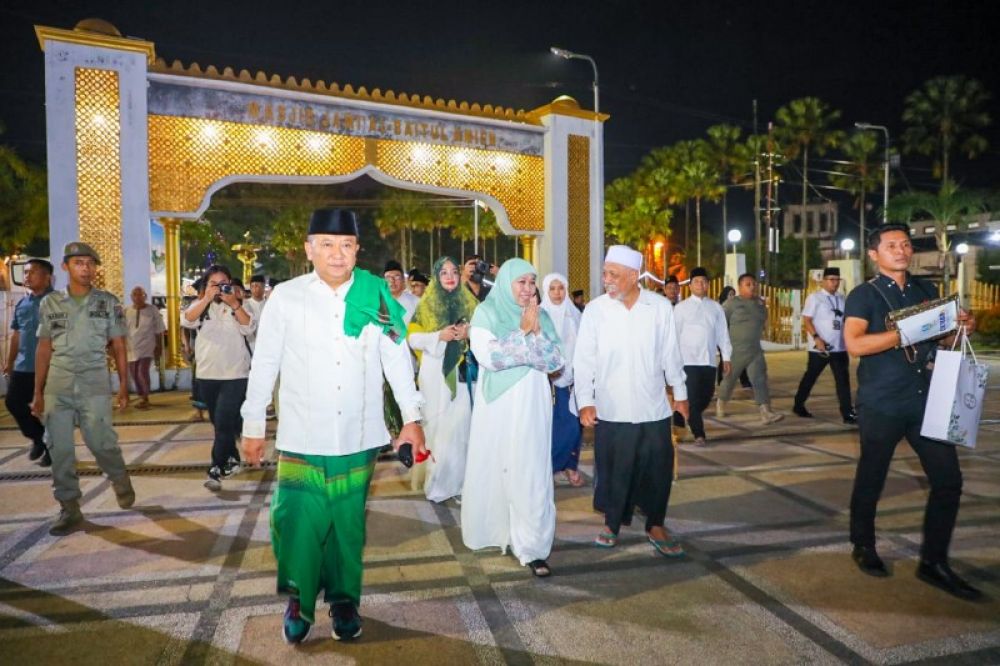 JEMBER | B-news.id - Gubernur Jawa Timur Khofifah Indar Parawansa melakukan shalat tarawih di Masjid Jami' Al Baitul Amien Kabupaten Jember, Sabtu (8/4/2023) malam.