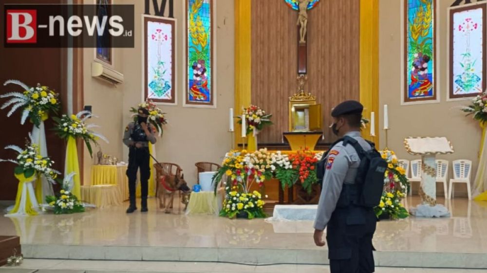 Tak hanya puluhan personil yang diturunkan, Unit satwa K9 pun turut dikerahkan oleh Polresta Banyuwangi untuk mensterilisasi tempat ibadah Gereja. Upaya ini dilakukan sebagai bentuk untuk memberikan rasa aman dan nyaman, bagi umat Kristiani saat menjalankan ibadah.