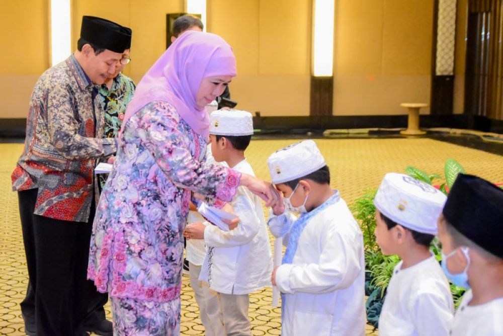 Setiap kegiatan Gubernur khofifah selalu menyisihkan waktu untuk beri santunan anak yatim. (Ist)