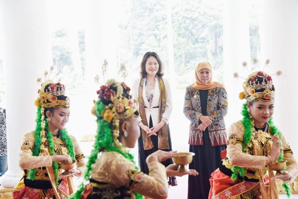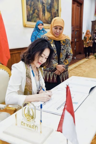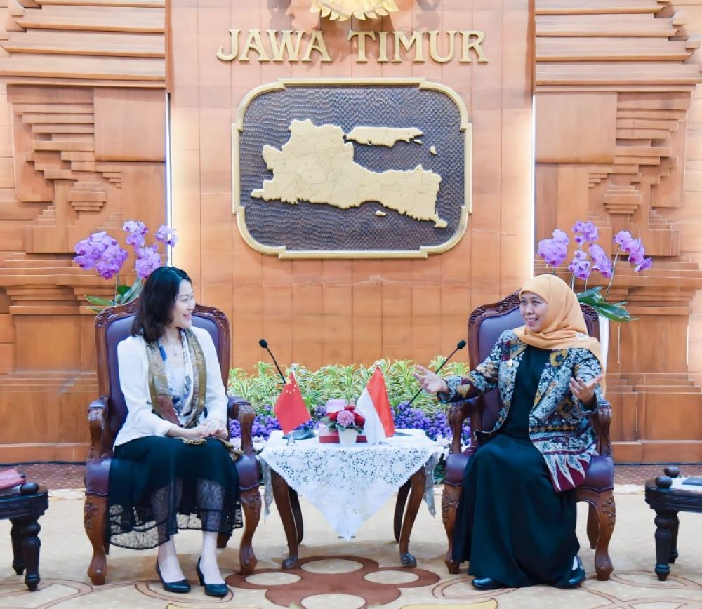 SURABAYA | B-news.id - Gubernur Jawa Timur Khofifah Indar Parawansa menerima kunjungan Duta Besar (Dubes) Republik Rakyat Tiongkok untuk ASEAN, Hou Yanqi di Gedung Negara Grahadi Surabaya, Kamis (13/4).
