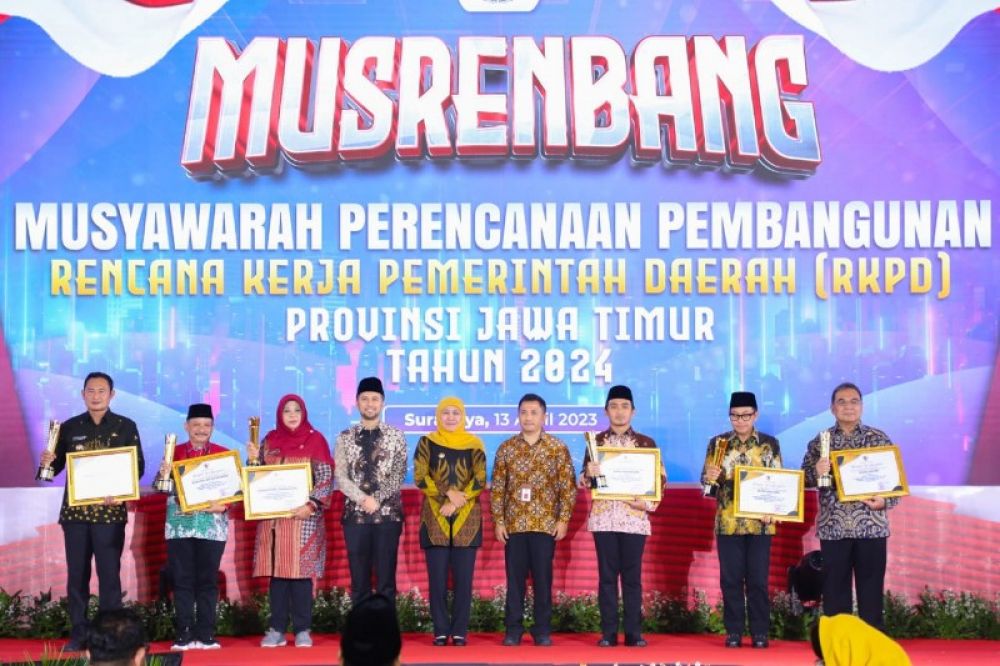 Mengambil tema “Peningkatan Sumber Daya Manusia dan Percepatan Pemulihan Ekonomi melalui Transformasi Ekonomi Insklusif menuju Masyarakat Jawa Timur yang Adil, Sejahtera, Unggul, dan Berakhlak”, Musrenbang RKPD 2024 dibuka secra langsung oleh Gubernur Khofifah didampingi Wakil Gubernur Jawa Timur Emil Elestianto Dardak.