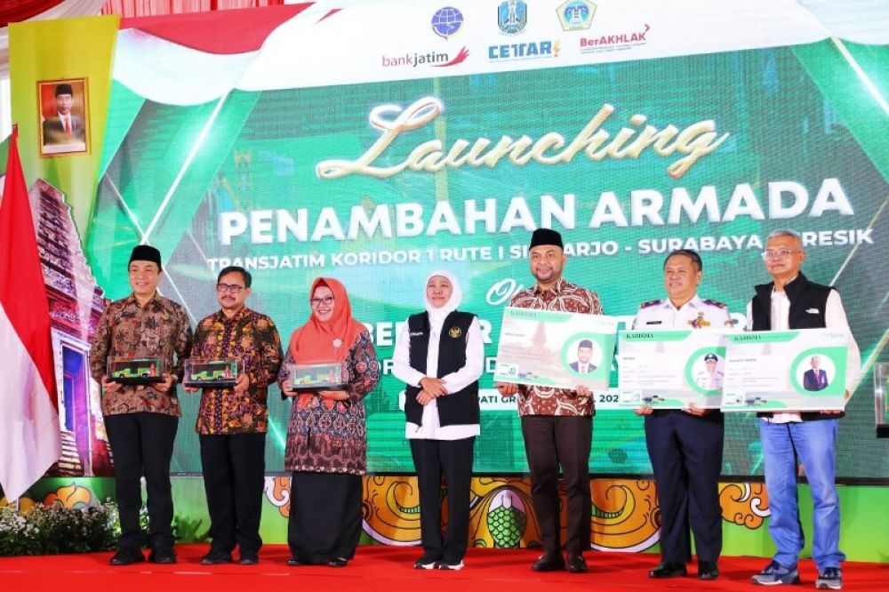 Secara khusus, Gubernur Jawa Timur Khofifah Indar Parawansa meluncurkan langsung penambahan Bus Transjatim Koridor I Rute Sidoarjo-Surabaya-Gresik di Halaman Kantor Pemkab Gresik, Jumat, (14/4).