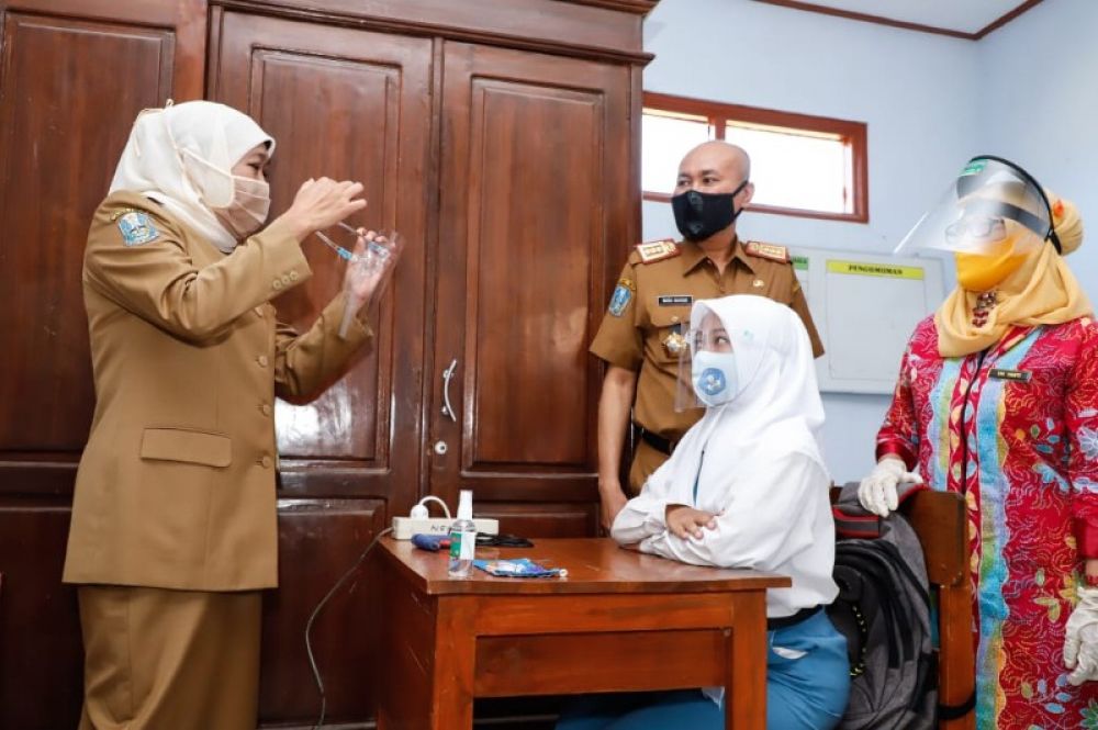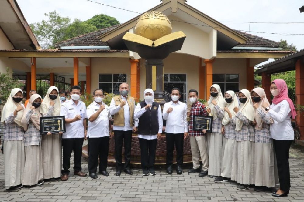 Gubernur Khofifah didampingi Kepala Dinas Pendidikan Jatim, Wahid Wahyudi saat melakukan sidak ke sekolah. (Ist)