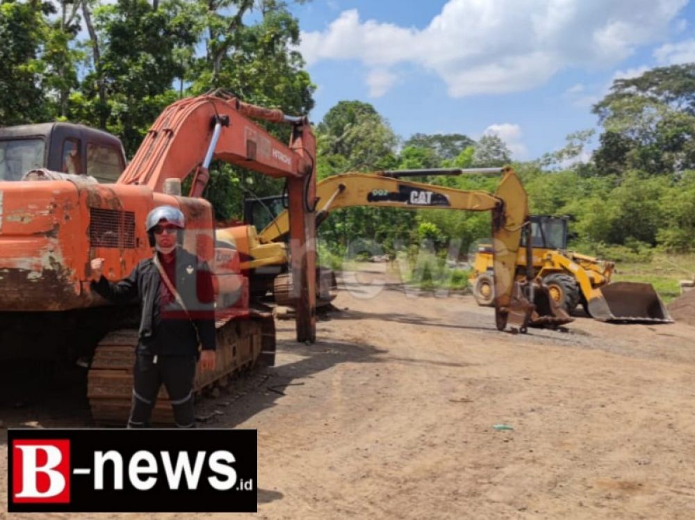 Nampak sejumlah alat berat dengan berbagai ukuran masih berjajar di posisi semula tanpa ada garis polisi, yang artinya masih boleh di operasikan.