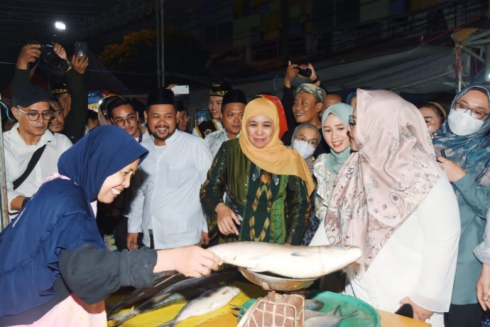 Gubernur Khofifah membeli ikan bandeng kawak. (Ist)