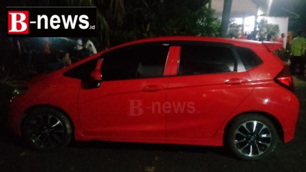 Satu buah unit mobil Honda Jazz turut diamankan oleh petugas sebagai barang bukti, Jumat malam. (Irw)