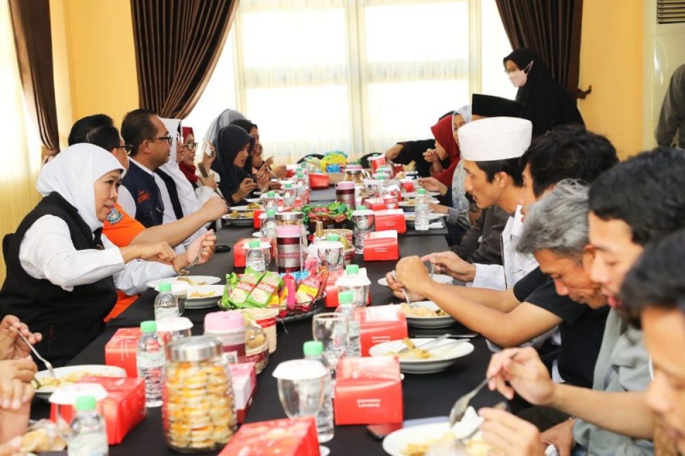 Setibanya di Asrama Haji Sukolilo Surabaya, Gubernur Jawa Timur Khofifah Indar Parawansa didampingi Sekdaprov Jatim Adhy Karyono menyambut para penyintas dari Sudan dengan sarapan pagi bersama.