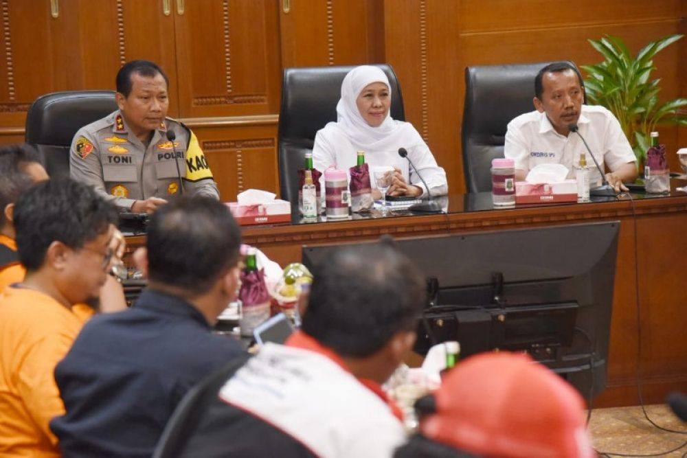 Didampingi Kapolda Jatim, Gubernur Khofifah menerima aspirasi perwakilan asosisiasi pekerja (ist)