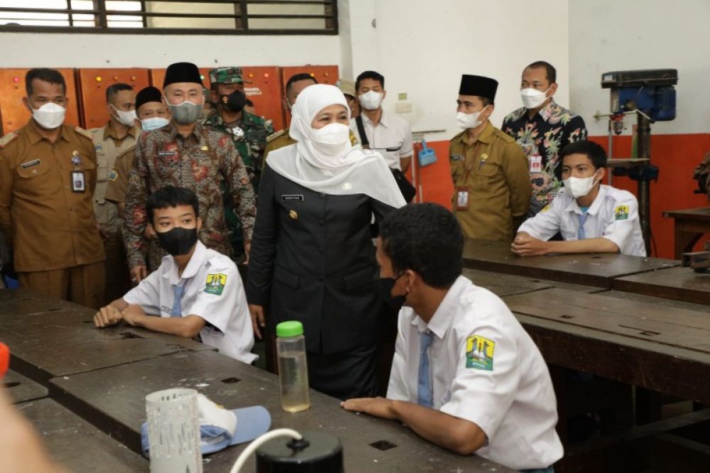 Gubernur Khofifah didampingi Kadindik Jatim Wahid Wahyudi saat melakukan sidak. (Ist)